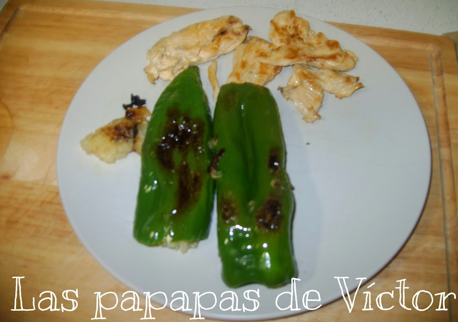 Rellenar los pimientos con la mezcla y hornearlos calor arriba y abajo hasta que esten doraditos o al gusto.