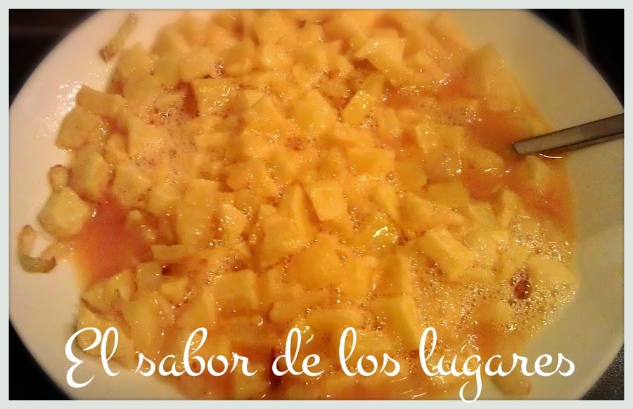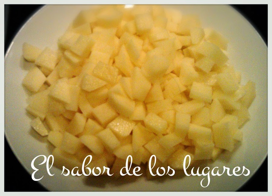 Pela y corta las patatas en cuadritos pequeños. Fríelas en abundante aceite de oliva junto con la cebolla cortada en juliana. Cuando estén fritas, escurre sobre papel absorbente.