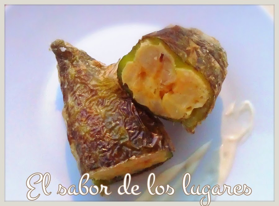 Lava los pimientos, corta la parte superior del tallo y retira las semillas. Rellena con la mezcla de patatas y huevo con ayuda de una cuchara o una manga pastelera. Pasa la parte superior de los pimientos por harina para sellarlos y que no se salga el relleno. Fríe en abundante aceite, escurre el exceso sobre papel absorbente y sirve bien caliente.