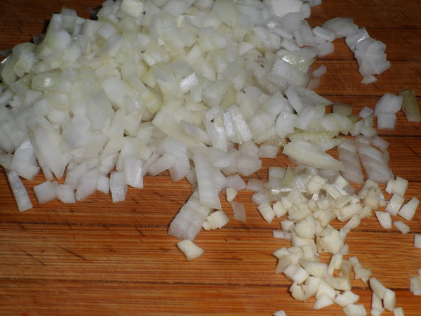 Picaremos los ajos y la cebolla.