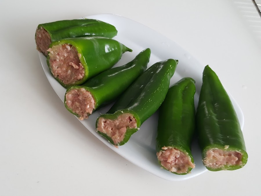 A la hora de comprar los pimientos, os aconsejo que intentéis que sean lo más rectos posible, ya que si son muy retorcidos, podemos correr el riesgo de que no entre bien el relleno y queden partes del pimiento vacías.