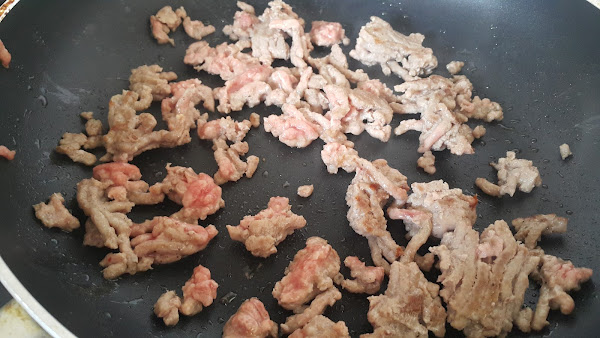 Paralelamente en una sartén doramos la carne salpimentada. Una vez lista reservamos.