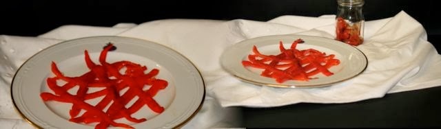 Cortamos en tiras y vamos colocando en un frasco de cristal. Regaremos con el aceite y ajos que queden en la sartén. Son un manjar. Los podemos poner como acompañamiento de una lata de ventrecha de bonito, de anchoas o, simplemente, solos. Se conservan en el frigorífico 3 días. Yo no los dejaría más tiempo.