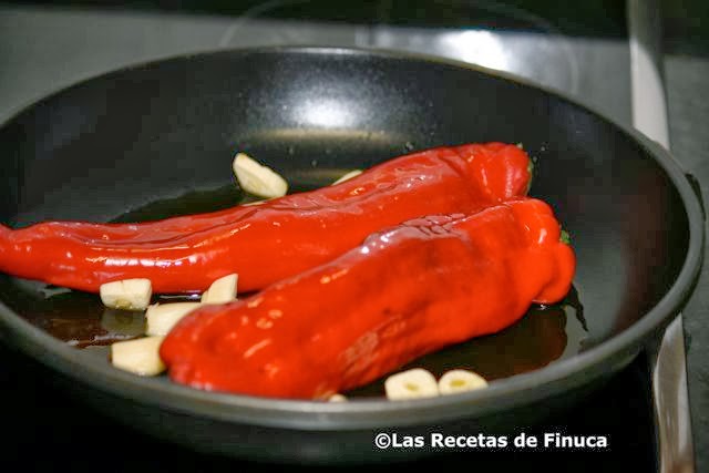 El otro día comentaba con Ruqui del Blog "Cocina sana y fácil" que donde compro pimientos de Cantabria me recomendaron no asarlos en el horno. Me aseguraron que quedaban más sabrosos si se confitan lentamente en una sartén con un poco de aceite. Seguí los consejos de Bea, hice la prueba ese día pero sin pensar en poner el experimento en el blog porque no sabía el resultado. He repetido y los he cocinado igual pero añadiendo unos ajos. Me quedo con el sabor de los pimientos hechos con ajos. Aquí os dejo la receta.