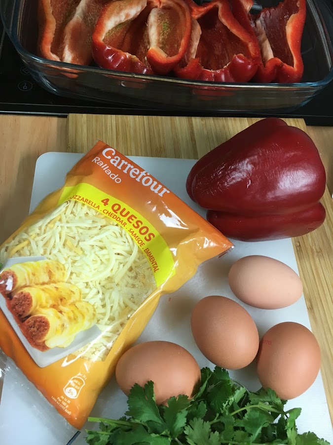 Sólo hay que precalentar el horno y matener los pimientos unos minutos mientras se funde el queso y se hace el huevo.