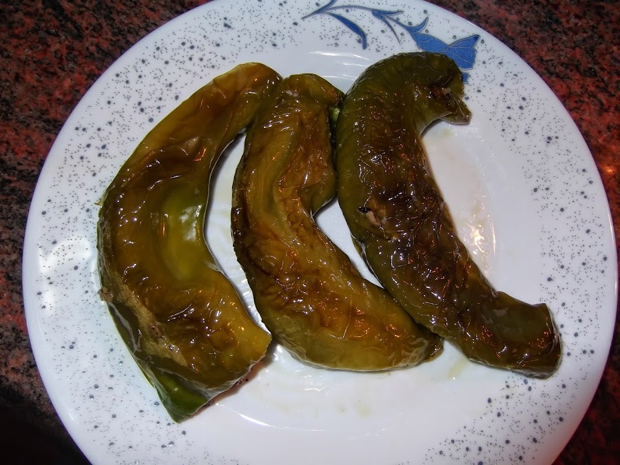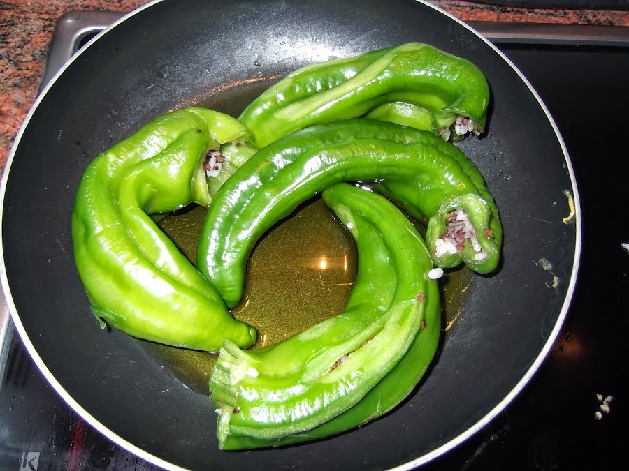 Luego echáis aceite de oliva en una sartén ponéis los pimientos encima y los vais cocinando a fuego medio bajo para que se vayan friendo poco a poco. Este es el paso más importante, ya que si no se os pueden quemar por fuera y quedar crudos por dentro. Yo por ejemplo los tuve casi una hora y estaban muy blanditos que es como me gustan, lo mejor es que los toquéis y cuando estén blandos los saquéis y os los comáis calentitos.