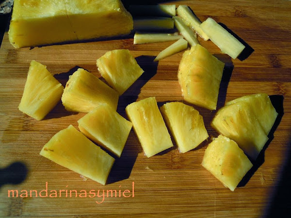 La piña es una de las frutas más bellas y deliciosas que se encuentran en nuestros mercados. Es una fruta grande, con una corteza dura que termina en una corona de hojas. Su carne es suculenta, de color amarillo, y con un gran contenido en vitamina C, azúcar y fibra. Se toma como postre al natural o con almíbar, combinando bien con algunos sabores salados y siendo utilizada en la cocina china como ingrediente para prepara platos agridulces de cerdo. Su zumo es también uno de los más consumidos a nivel industrial.