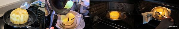 Retirar del fuego, colocar en una fuente apta para el horno la piña y el almíbar por encima. Hornear a 170º durante 1 hora aproximadamente. Durante la cocción darle la vuelta y rociarla con el jugo de vez en cuando.