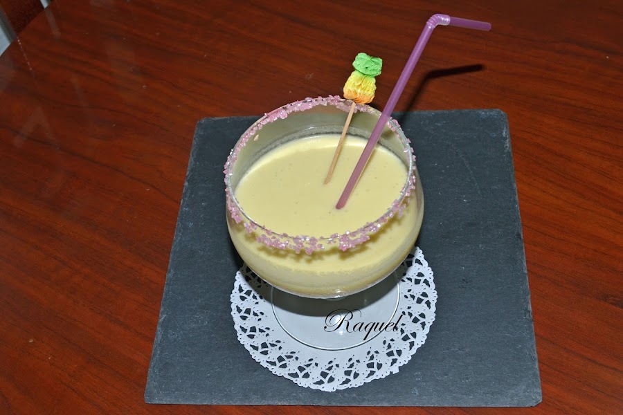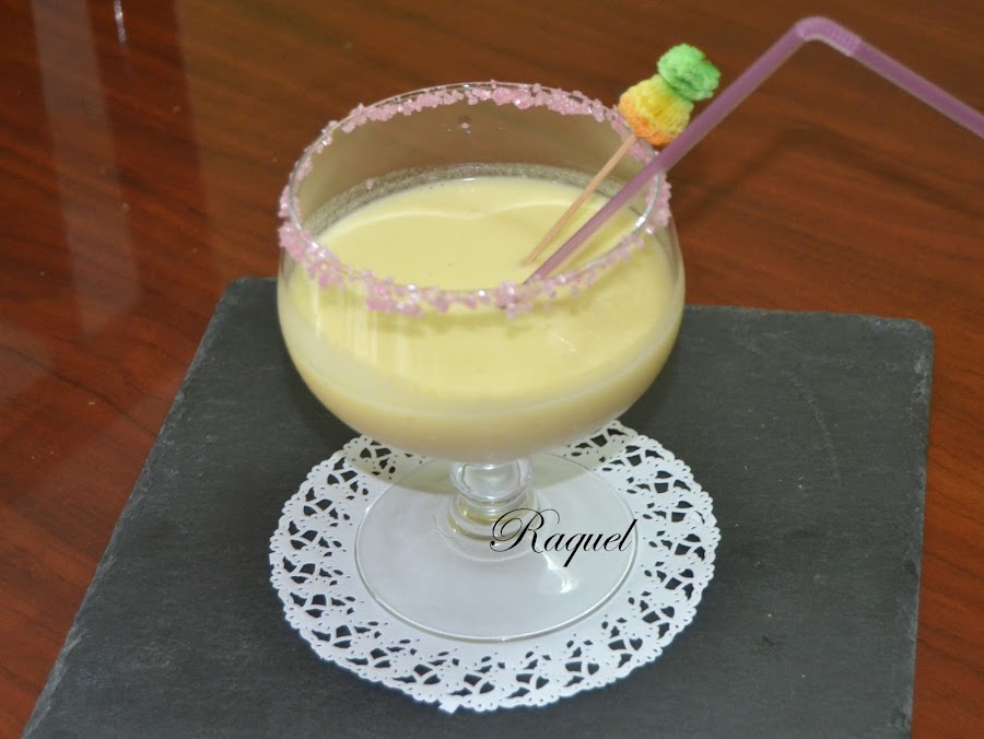 Tengo recuerdos muy bonitos de cuando era pequeña en el bar de mi vecina en verano, mi padre me compraba una piña colada y me la tomaba allí con el, me hacia sentir mayor, sin alcohol por supuesto, no penséis mal, desde entonces y ya ha llovido bastante, no he vuelto a ver aquellos botellines de cristal y mira que los he buscado, no se si es que ya no los hacen o que? la cuestión es que tenia muchas ganas de volver a recordar aquel sabor, asi que yo me la he preparado en casa, pero con un poquito de ron, no mucho, por que a mi no me gusta el alcohol, ohh me ha hecho recordad aquellos momentos.