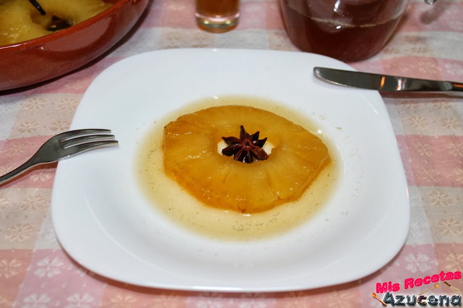 Hoy como todos los viernes nos toca el postre para despedir la semana, esta receta es ligera, bueno, es ligera si os coméis solo la piña, si os tomáis el licor que os saldrá al prepararla, ya no, ese esta cargadito de calorías, jaja, se hace muy rápido, sé que casi siempre digo lo mismo, pero es que es la verdad, quizás el tiempo más largo es el de reposo para que este bien fría.