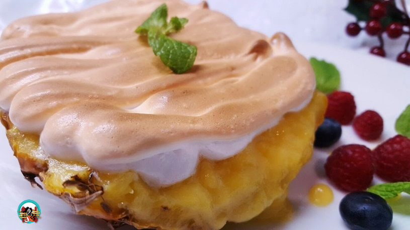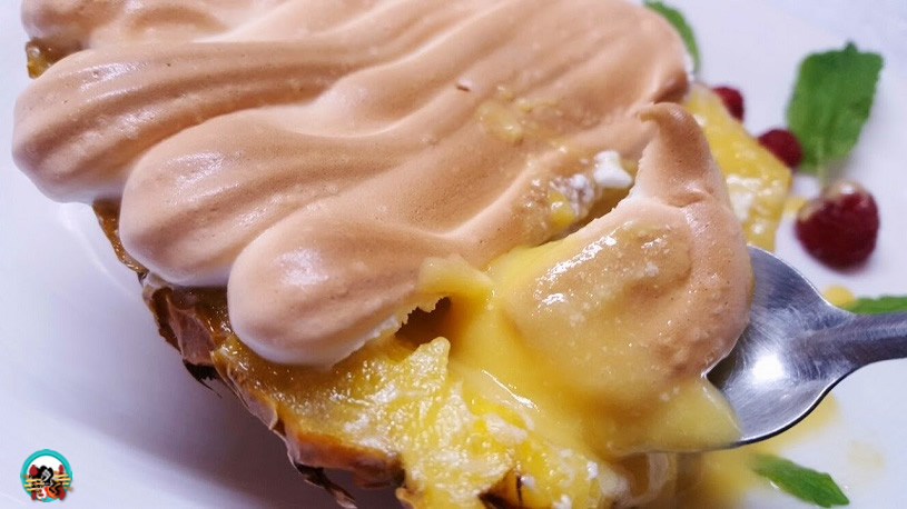 Después de un buen banquete de fiesta, apetece tener un buen final de boca. Pocas cosas pueden superar a esta exquisita piña gratinada, con rellena una deliciosa crema de la misma fruta.