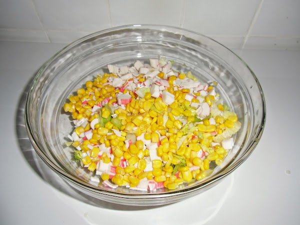 Ahora vamos a añadir la salsa al bol con el resto de ingredientes ligándolo todo muy bien