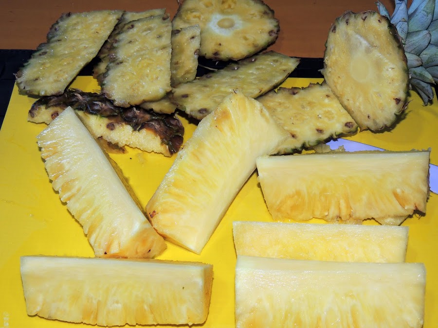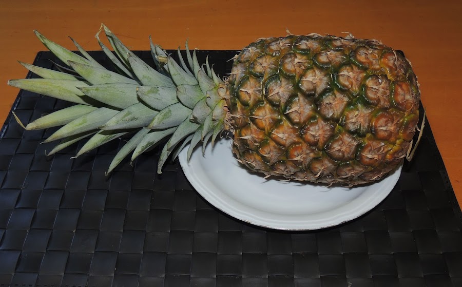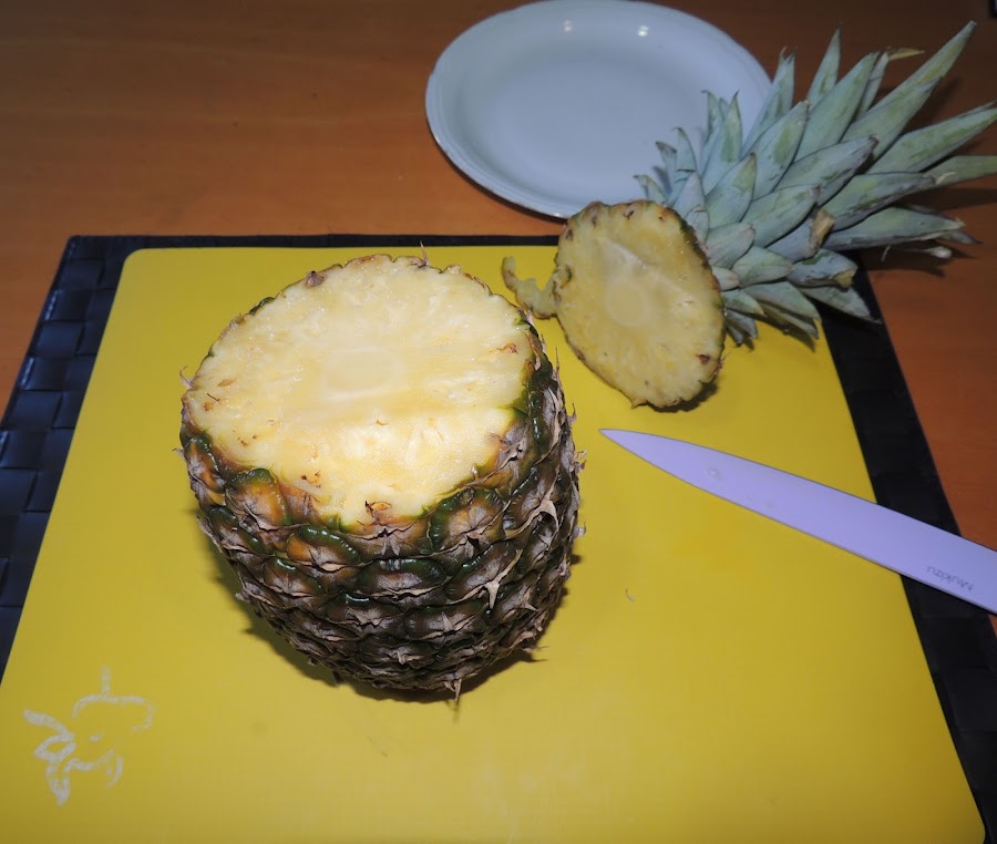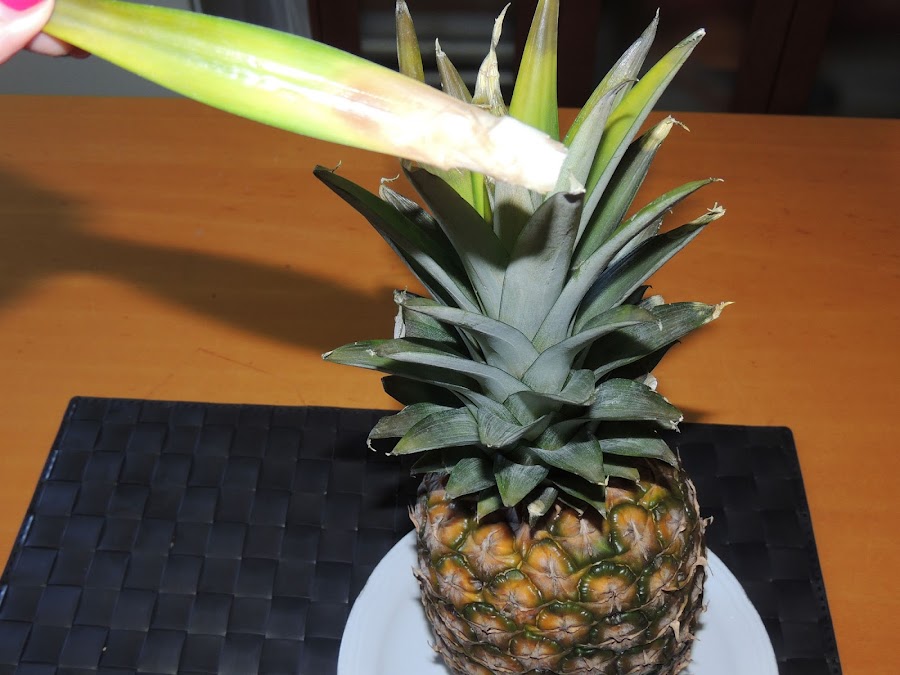 Pero si al tirar, opone un poquito de resistencia y luego sale, es que la piña está en su punto, como la de la foto. Ya sólo os quedará cortarla.