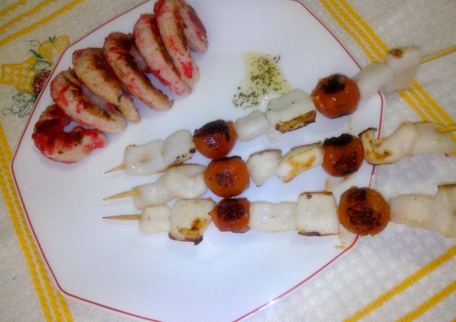 Nuestra amiga de Dulces sueños, nos aconseja esta brocheta, de calamar y sepia, ricos en yod, buenísimo para nuestro metabolismo y además, facílisimas de preparar...