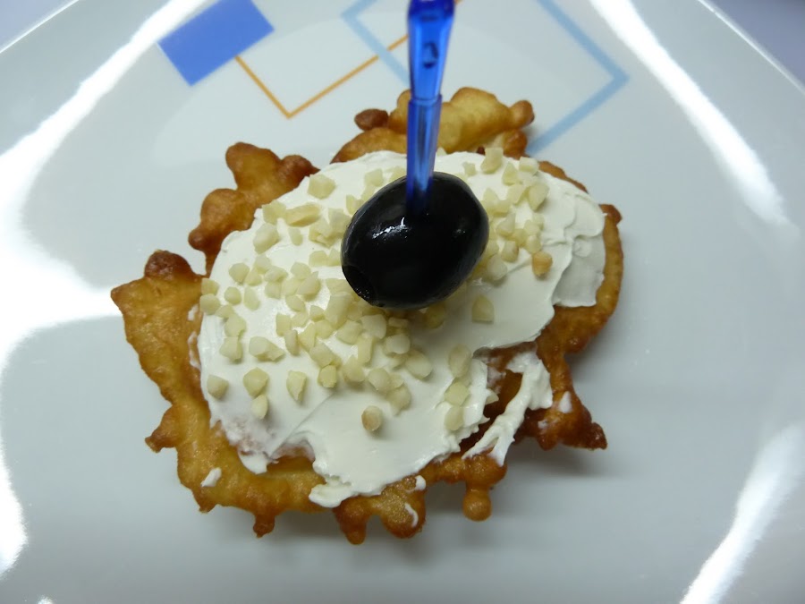 1) Batir todos los ingredientes de la masa en el vaso de la batidora o, mejor aún en una jarra de plástico para que podamos verter porciones de la mezcla con facilidad sobre el aceite caliente.