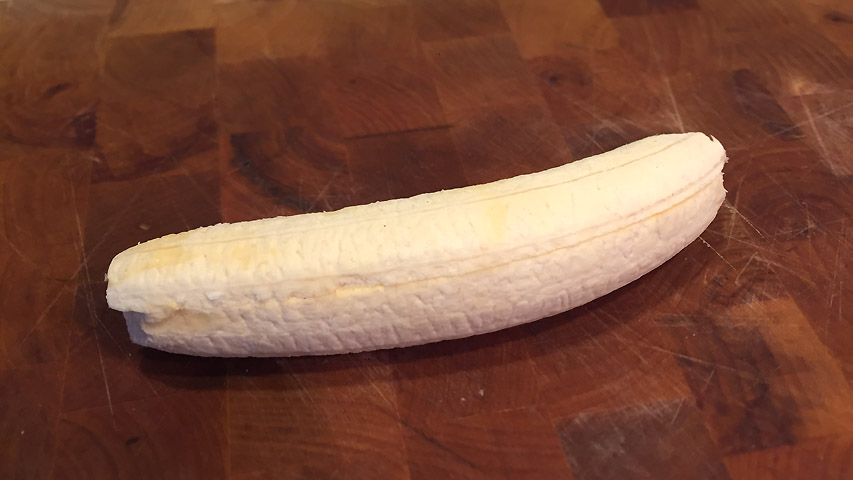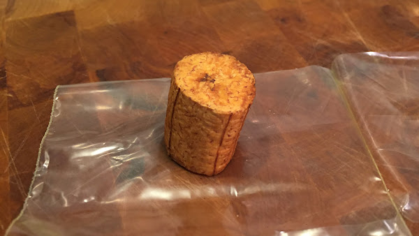 Haciendo un par de cortes a la piel, estos plátanos se pelan fácilmente. Verás que son bastante leñosos.