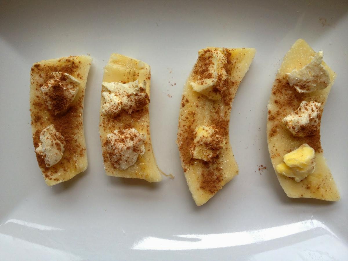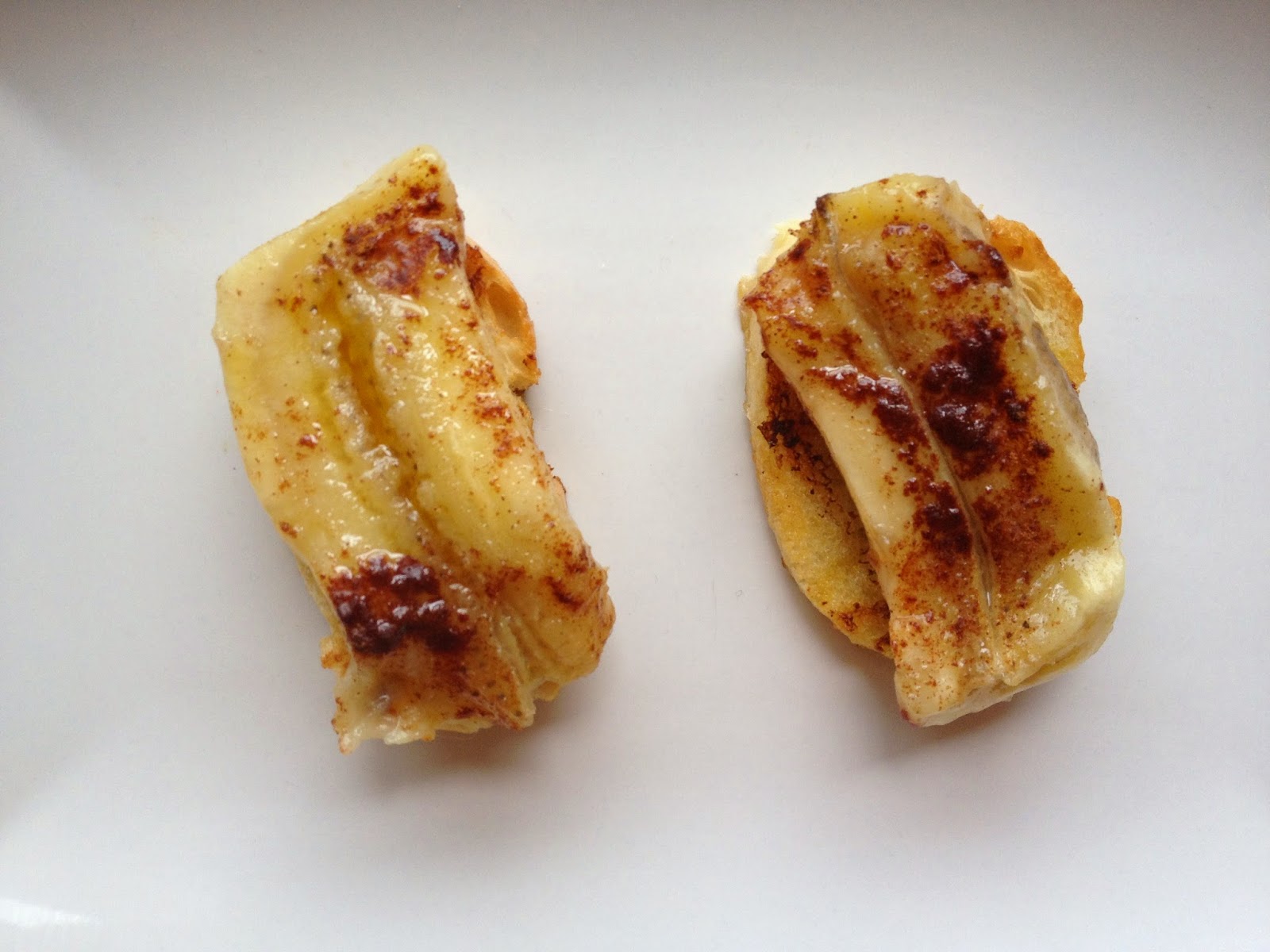 2 Sobre el plátano,incorporamos una pizca de azúcar y canela,sin olvidarnos un poco de mantequilla.
