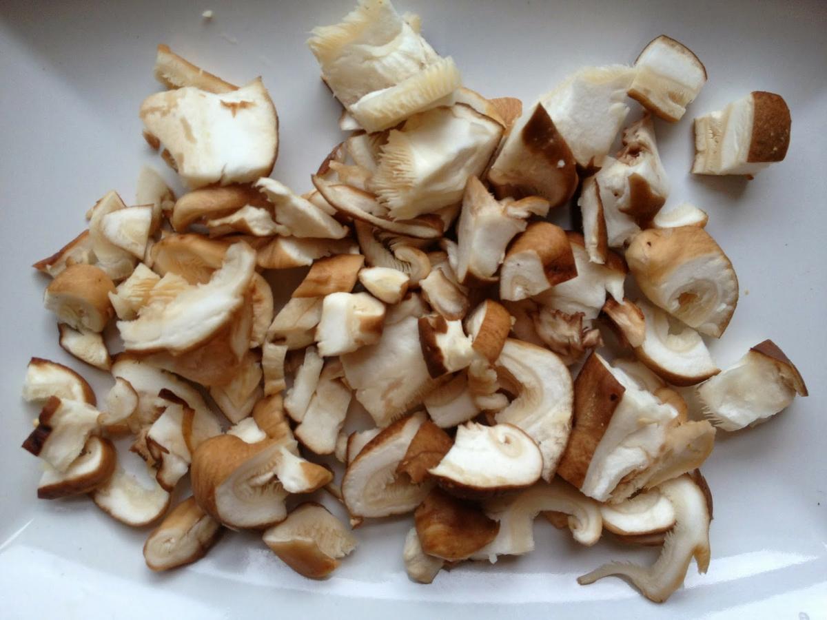 4 Ahora que ya tenemos nuestro plátano cocinado, lo dejamos enfriar y comenzamos a preparar las setas, si no encontráis esta modalidad de setas ,podéis usar otro tipo de seta que os resulte mas sencillo de encontrar o que os guste mas.