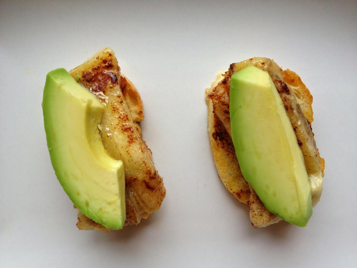 8 A continuación , ponemos sobre el plátano,unas rodajas de aguacate.