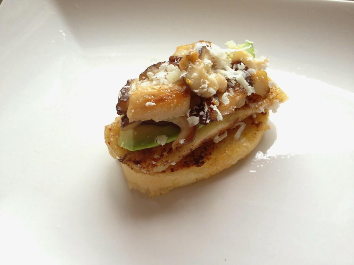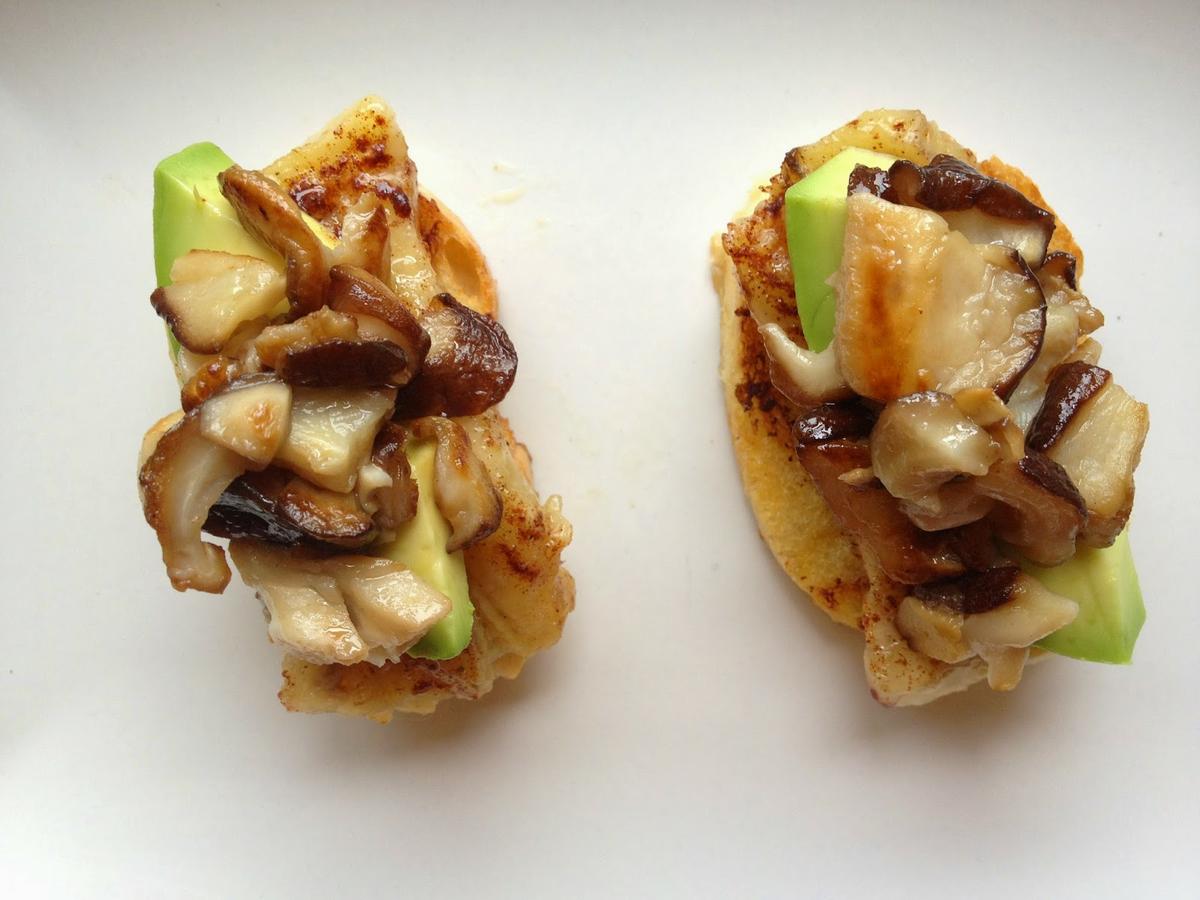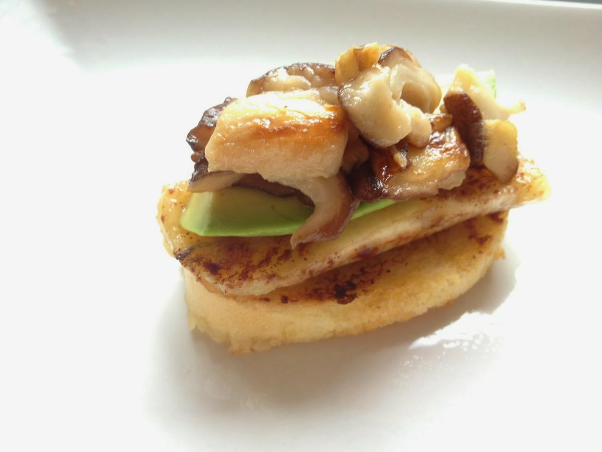 9 Sobre el aguacate , añadimos las setas que tenemos apartadas , unas pocas.