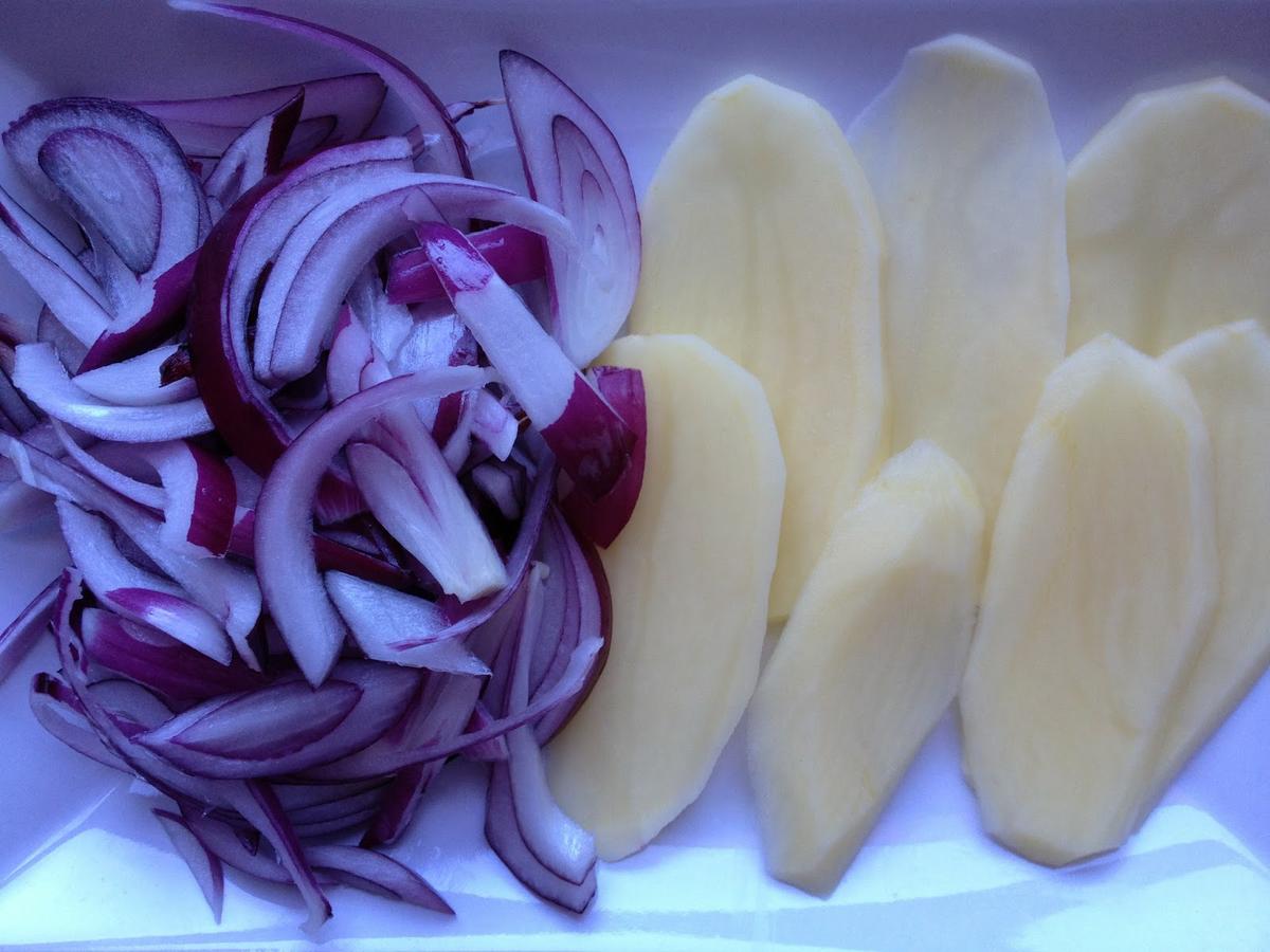 Segundo , colocamos sobre la patata la cebolla pochada ...