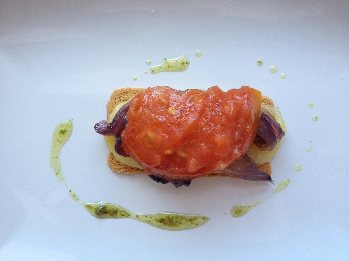 -Ahora queda lo mas sencillo ,colocar el tomate sobre la cebolla....