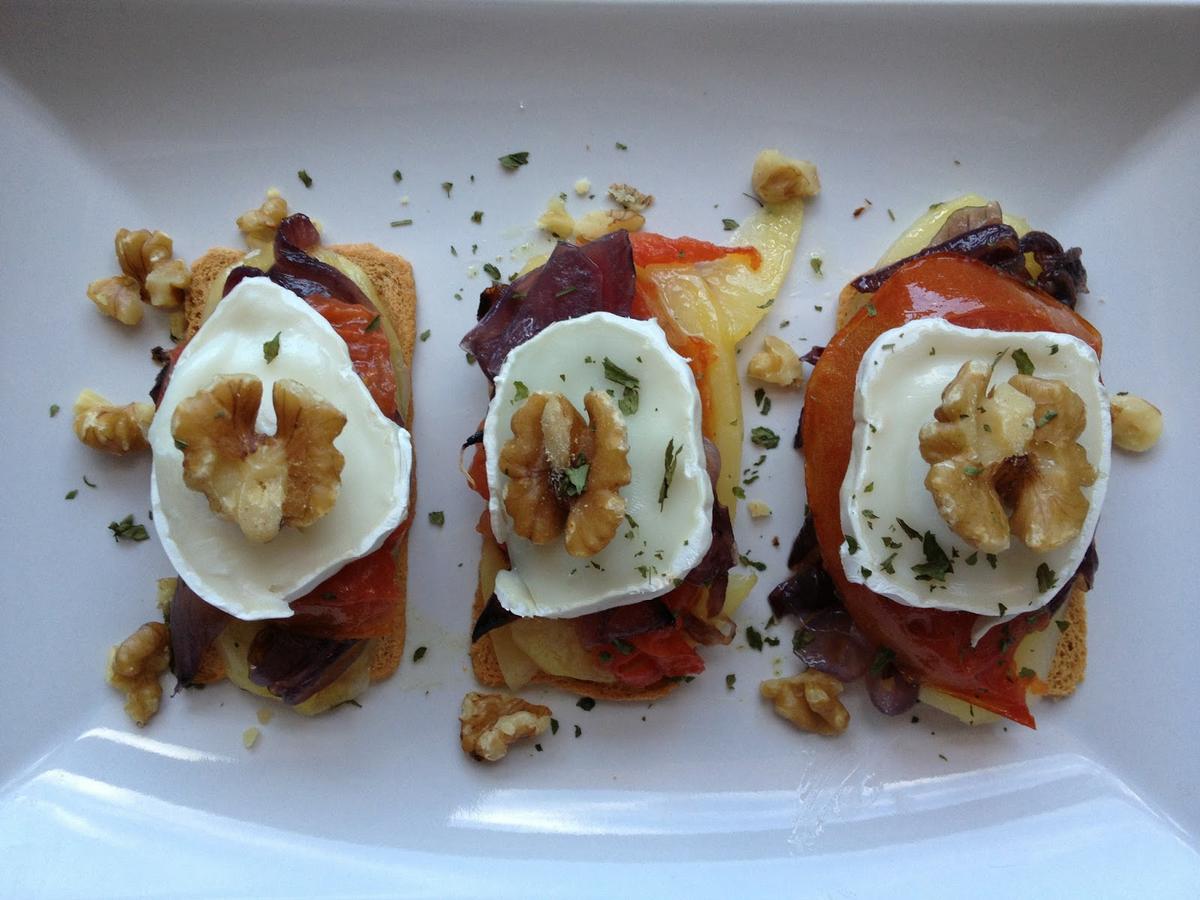 Para terminar cortamos un cachito de queso de cabra en rulo y ponemos la nuez sobre el queso .....