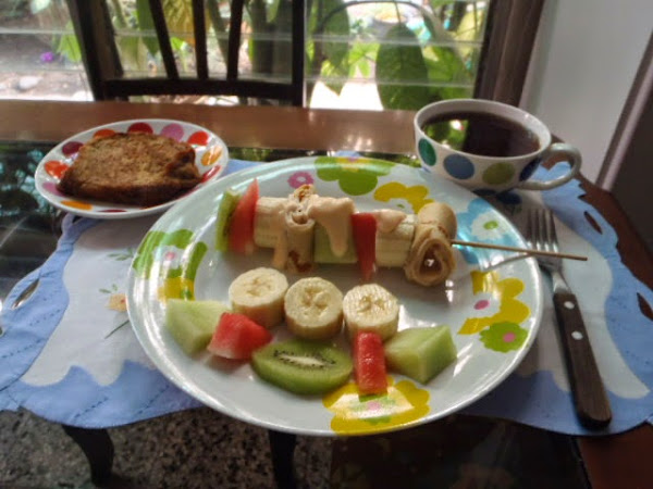 Parta en rodajas su kiwis y sus bananos, coloque al inicio del palito su pancake enrolladito y vaya colocando una a una las frutas que ya tiene listas en cuadros y rodajas. Puede servirlos solos o con cajeta según prefiera. Y puede acompañarlos de una leche o una taza de café.