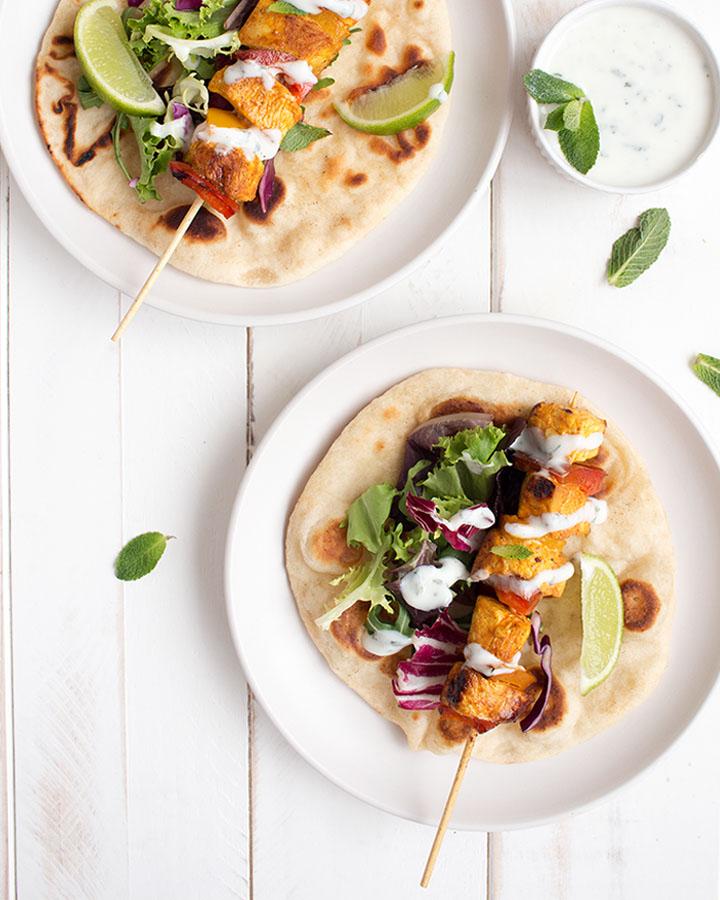 Preparar unos pinchos de pollo al curry en casa es fácil y rico, os lo demuestro en la siguiente receta que además incluye pan Naan y salsa de yogurt. ¡Os vais a chupar los dedos!