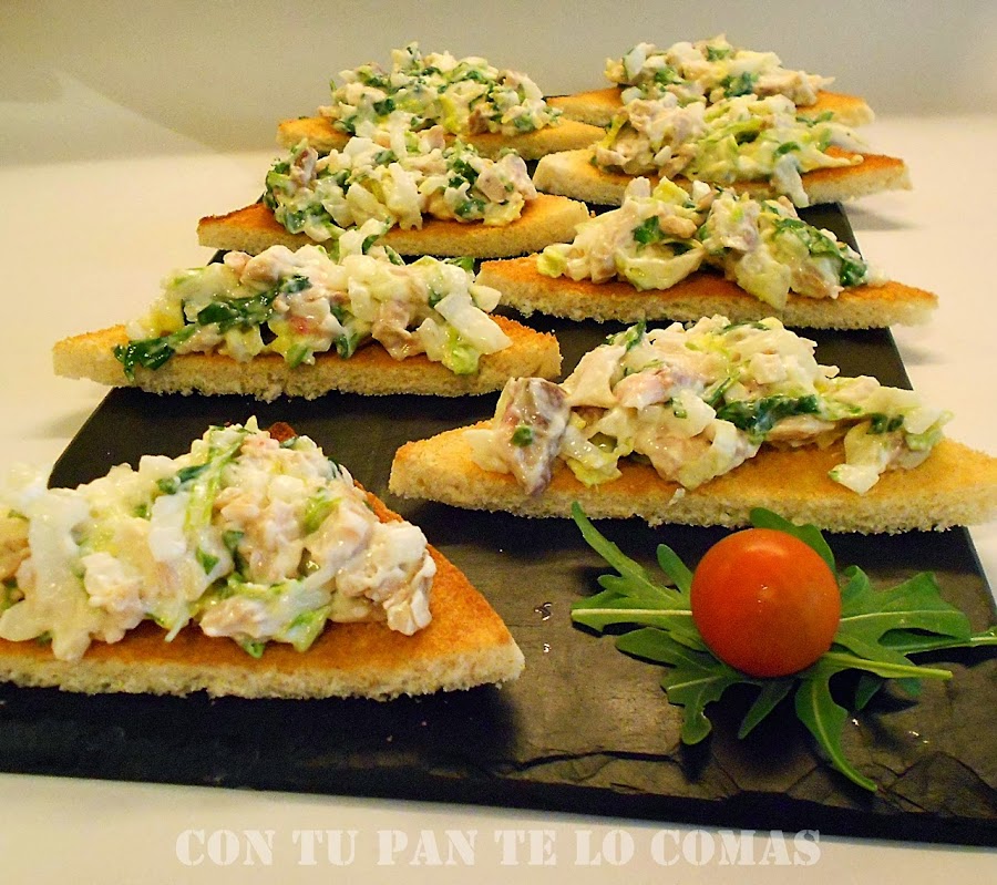 Los descubrí hace tiempo en un libro de tapas y pinchos. Llevaban pollo, lechuga, cebolleta y mayonesa y el nombre me hizo gracia aunque en la foto aquello tampoco se veía demasiado verde.