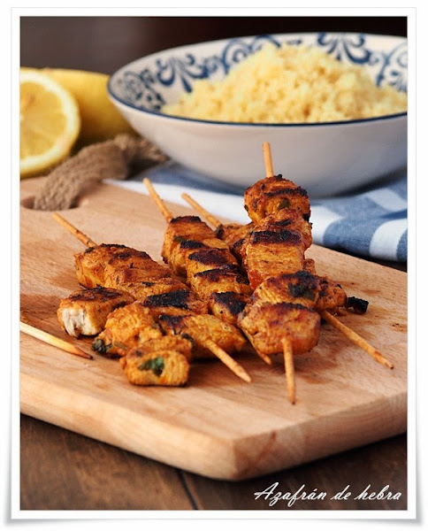 Calentar muy bien la plancha y poner un poco de aceite, colocar los pinchitos una vez ensartada la carne y darles las vuelta hasta que estén hechos por todos los lados, untándolos varias veces con el jugo del adobo.