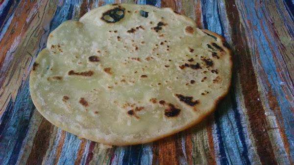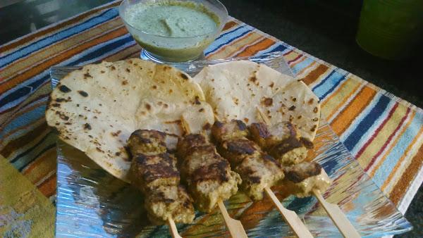 Una receta indo-española, porque las cocas de dacsa son típicas valencianas y sustituyen en este caso al pan naan o a un pan de pita, de la cocina india.