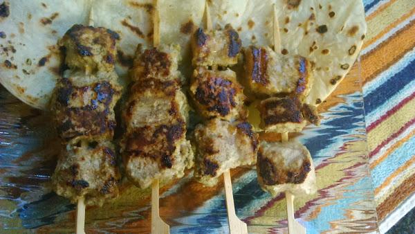 En lugar de pollo o cordero, he utilizado lomo de cerdo. Lo he marinado con salsa de yogurt y garam masala, que es una mezcla de especias con fuerte caracter hindú, pero bien le iría un curry o tandoori masala.