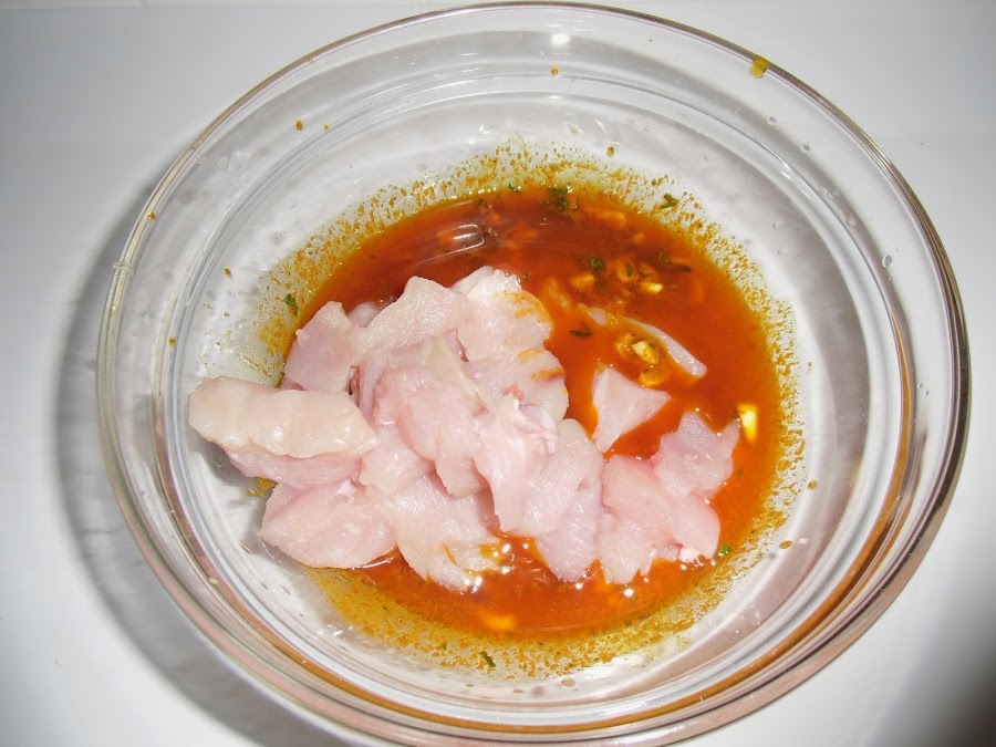 Agregamos el pollo cortado a dados y removemos todo muy bien