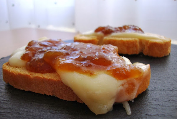 TOSTADAS CON CAMEMBERT Y MERMELADA DE TOMATE: