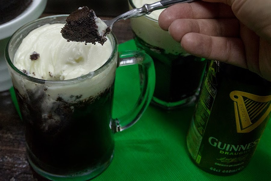 Así que para celebrar este día tan bonito os propongo que nos tomemos una Pinta de Guinness pero en tarta, todo un símbolo de Irlanda. Pero además os dejo una propuesta super divertida y que vestirá vuestra mesa de fiesta, hornearla en la propia jarra donde servirías la cerveza. Queda superchula y sobra decir que está de muerte.