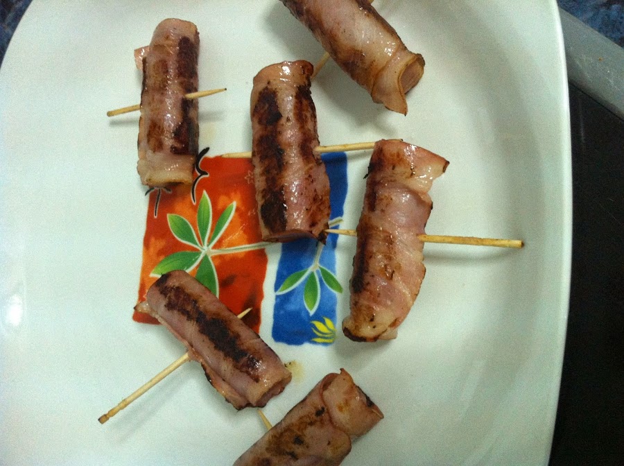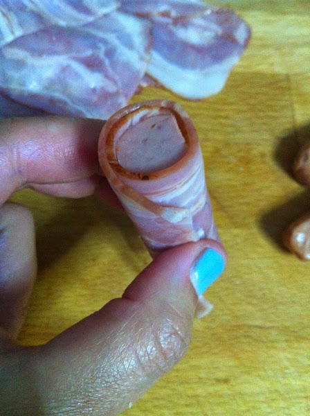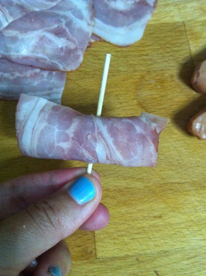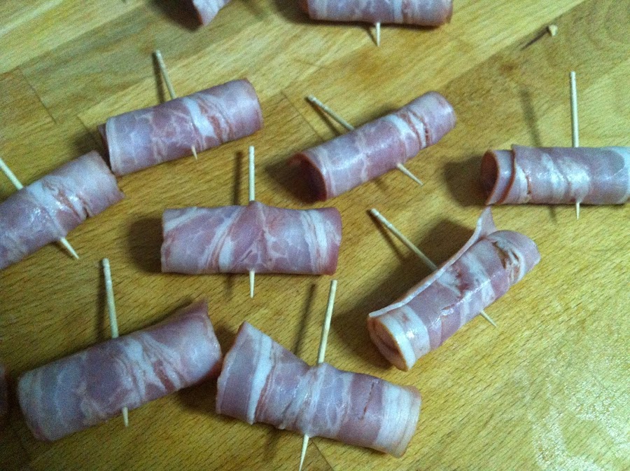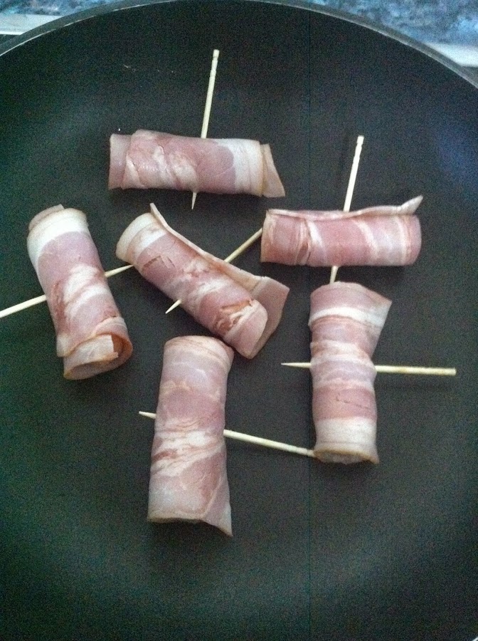 Y pincharlas con un palillo para que el bacon no se desenrolle.
