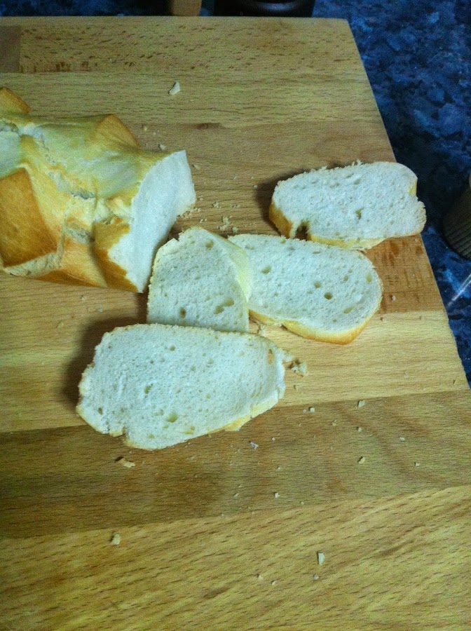 Mientras se nos hacen, cortaremos unas rodajitas muy finas de pan, y las reservaremos.