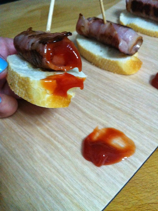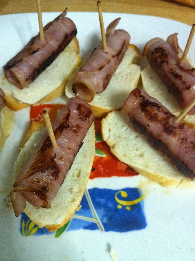 Cuando nos juntamos las amigas y recordamos esos momentos, siempre salen a relucir los pintxos de salchicha y bacon...No me preguntéis porque, solo se que los recordamos siempre, por el rico sabor que tenían, mucho mas buenos que las tortillas y sandwiches que aquella cocinera tan buena y tan de casa nos preparaba.