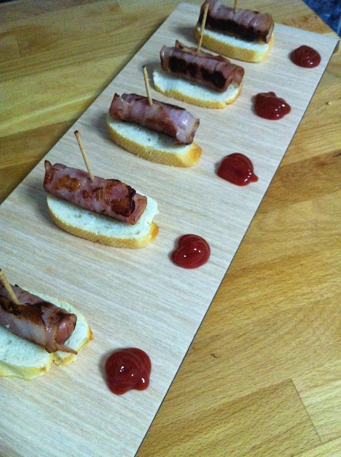 Con una simple salchicha y un poco de bacon, hemos preparado un sencillo y delicioso entrante, que encantara tanto a mayores como a pequeños.
