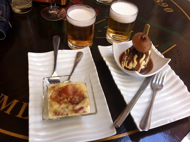 Crema de Boletus Edulis con fideos y crujiente de bacon. Otra vez la crema de Boletus, es que me encanta.Si pasas por Pamplona, no dejes de visitar el bar Gaucho, un clásico que siempre está bien. También puedes pasar al bar de al lado por otro gran ejemplo de pintxos navarros en el Bar Mô. También recomiendo este artículo sobre el Bar Gaucho del Blog de la famosa bloggera y gastrónoma navarra: Garbancita.