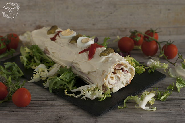 Otra receta más para las próximas fiestas navideñas. Un pionono inglés o brazo de gitano salado. Nunca lo había preparado en casa pero si que lo había tomado fuera. Es ideal para ponerlo como entrante en nuestras comidas navideñas, da mucho de si y es muy fácil de hacer. El contraste entre el bizcocho dulce y el relleno salado es muy bueno, y podéis ponerle el relleno que más os guste también. La receta la vi Mis Thermorecetas.