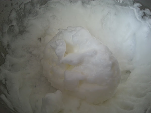 4. - Encendemos el horno a 180º y preparamos la masa, batiendo las dos clara a punto de nieve.