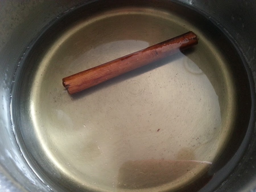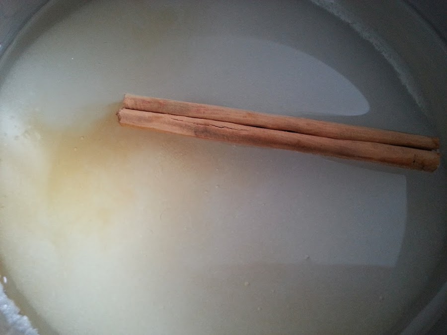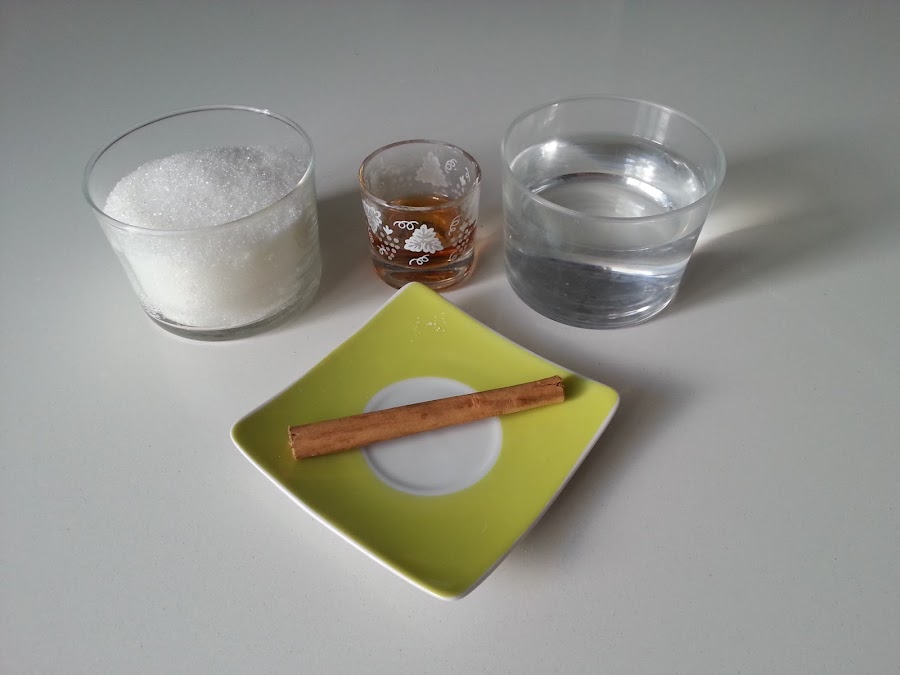 9. - Ponemos en un cazo los 100 gr de azúcar con el agua, la rama de canela y el Brandy, y dejamos hervir 5 minutos y dejamos templar.