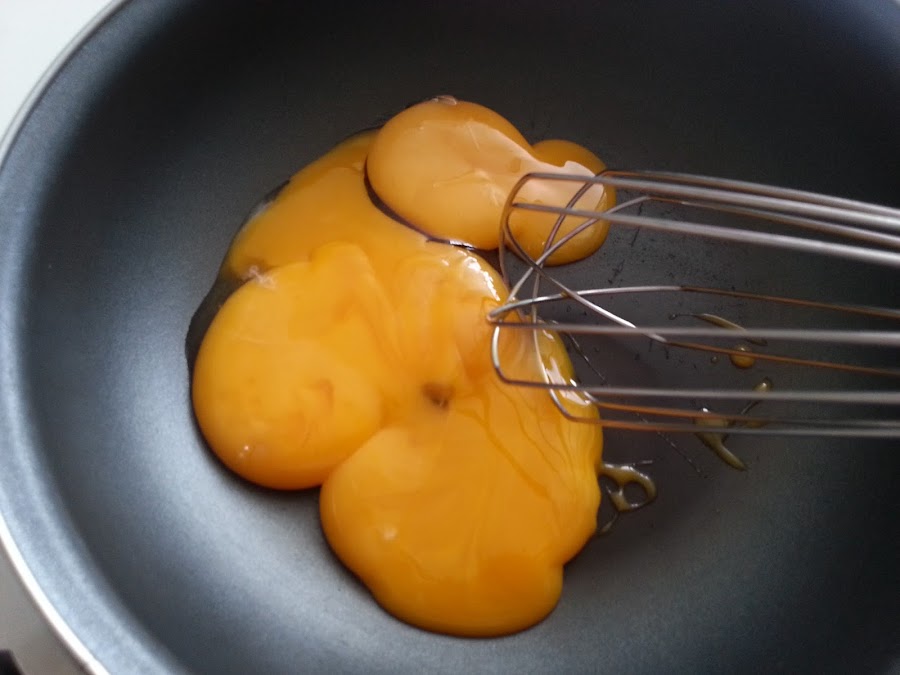 2. - Mientras, batimos las yemas en un cazo o sartén.