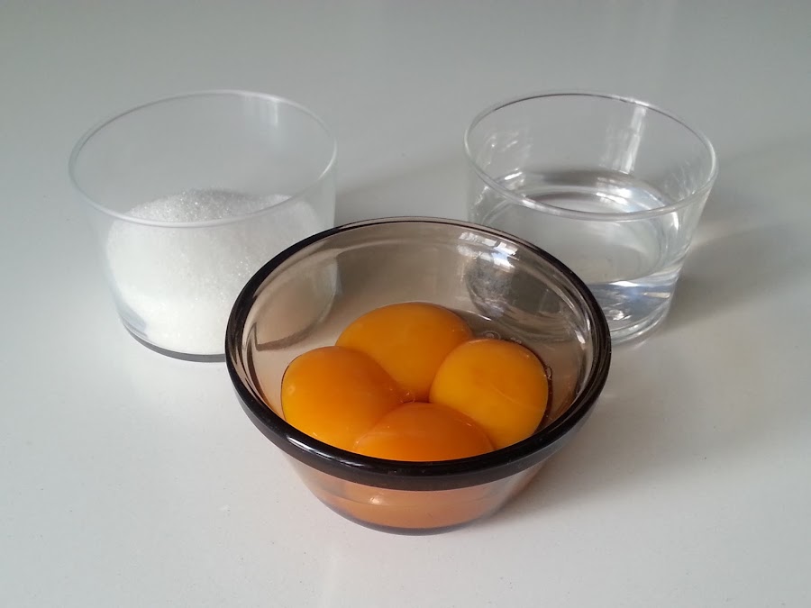 1. - Primero haremos la crema de yema, haciendo un almíbar con el azúcar y el agua, que dejaremos hervir por 5 minutos.