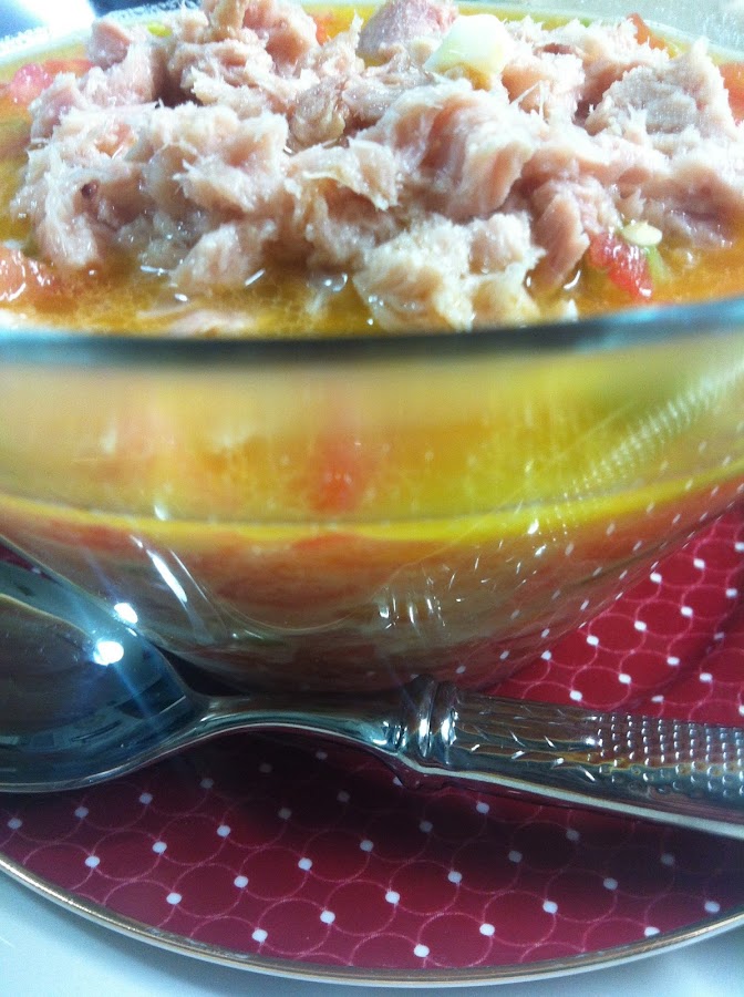 Ella me escribió esta receta de la Pipirrana tal y como la preparan en su casa, como a mi me gusta, con la receta de la abuela que pasa de generación en generación. Es la primera vez que preparo esta receta, pero os aseguro que no será la última...