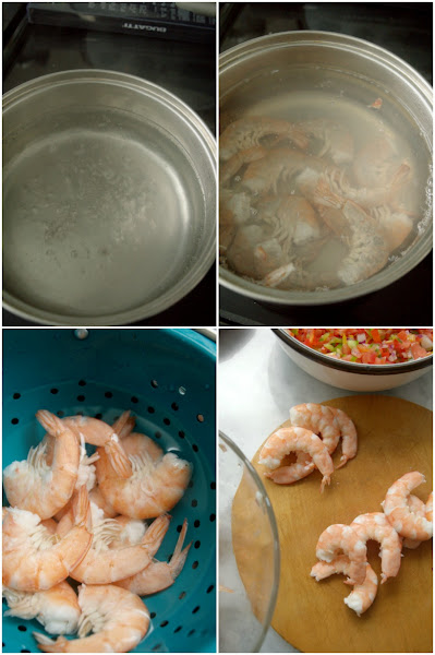 Carefully, drain shrimps and bath in cold water.