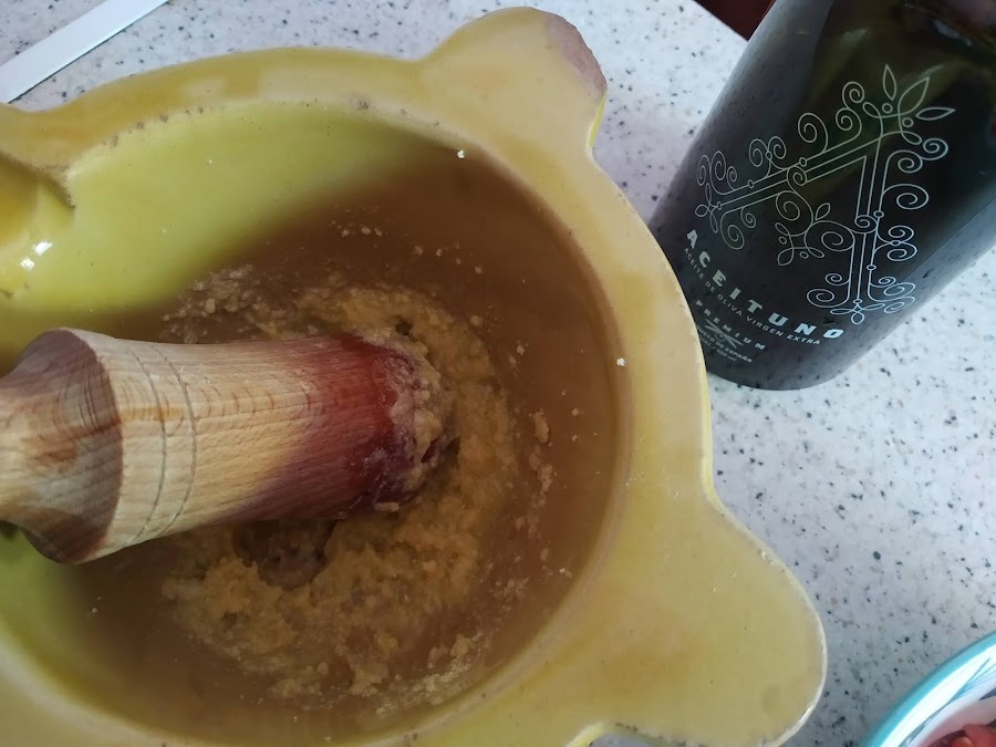 Quizás de sus vecinas, de aquellas “gitanas” granaínas alegres, vitales, bulliciosas y graciosas aprendió a hacer ésta pipirrana tradicional de “Graná” (Granada) que quedó en nuestras cocinas. Yo la preparo recordando el “chup chup” del tren a vapor y la musicalidad de las risas de mi madre y aquellas mujeres que vendían flores.