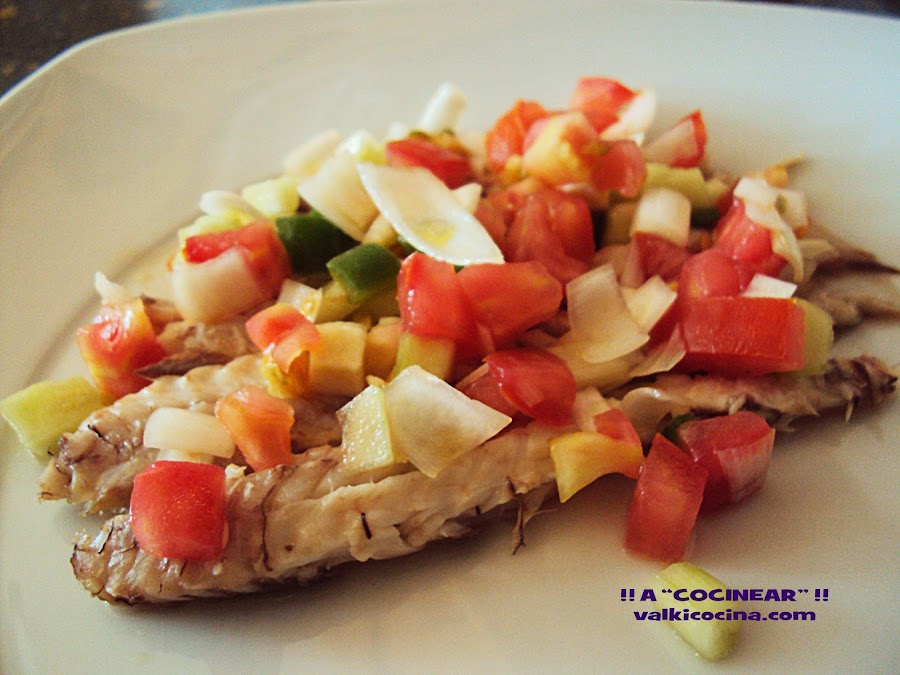 Se sirve tal cual como entrante, o se utiliza para acompañar pescados asados, ( aunque yo en este caso, suprimo el pepino ya que le quita protagonismo al pescado según mi humilde opinión ...); y si se le añade algún ingrediente más como por ejemplo pulpo, estariamos hablando de una pipirrana de pulpo, de huevas, de gambas, .. o del marisco o pescado que añadamos. A esta última opción también se le denomina "salpicón".
